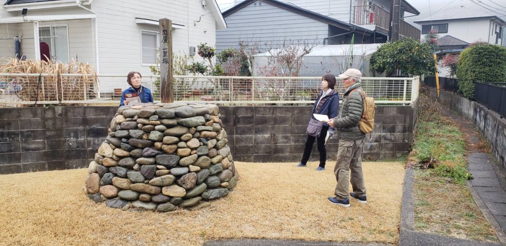 話し、一里塚の複元、赤田神社の隣にそびえるカルデラの話、凌雲寺の話など参加者
