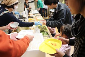 「第3回えがお食堂よしき」を4月13日に開催しました。 今回は初の豚丼の為、調理担当者は事前に味付調整をおこない、当日に臨みました。 天気にも恵まれ、300人を超える方々にお越しいただき、皆さんがそれぞれ交流するなか、準備した豚丼は瞬く間になくなりました。 今回から、マイ箸、マイコップのお願いを開催チラシのなかでお知らせしています。来場された中に持参してくださった方もおられました。 ご協力ありがとうございました!