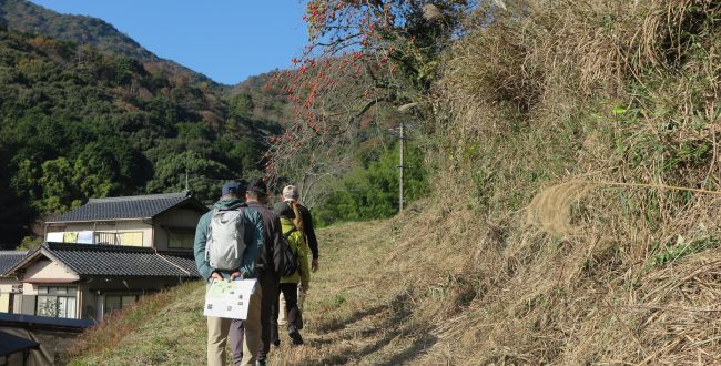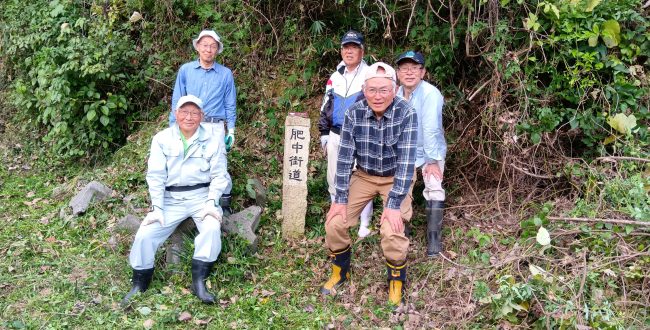 「ウォークラリー」参加者に肥中街道を案内